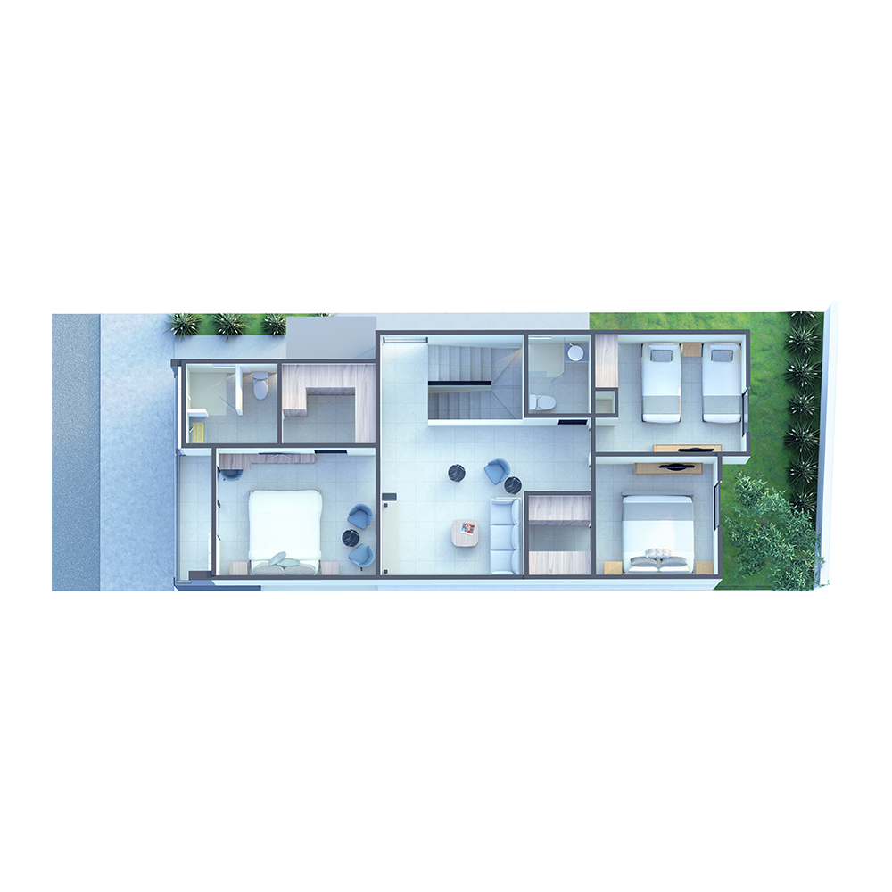 »Recámara principal con amplio closet, vestidor y baño completo» 2 Recámaras con espacio para closet» Estancia familiar» Baño completo compartido» Balcón en recámara principal