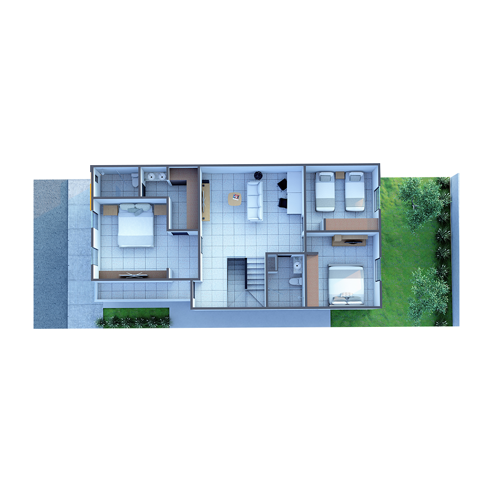 » Recámara principal con amplio closet, vestidor y baño completo» Balcón en recámara principal» 2 Recámaras con espacio para closet» Amplia estancia familiar con espacio para estudio y home office» Baño completo compartido