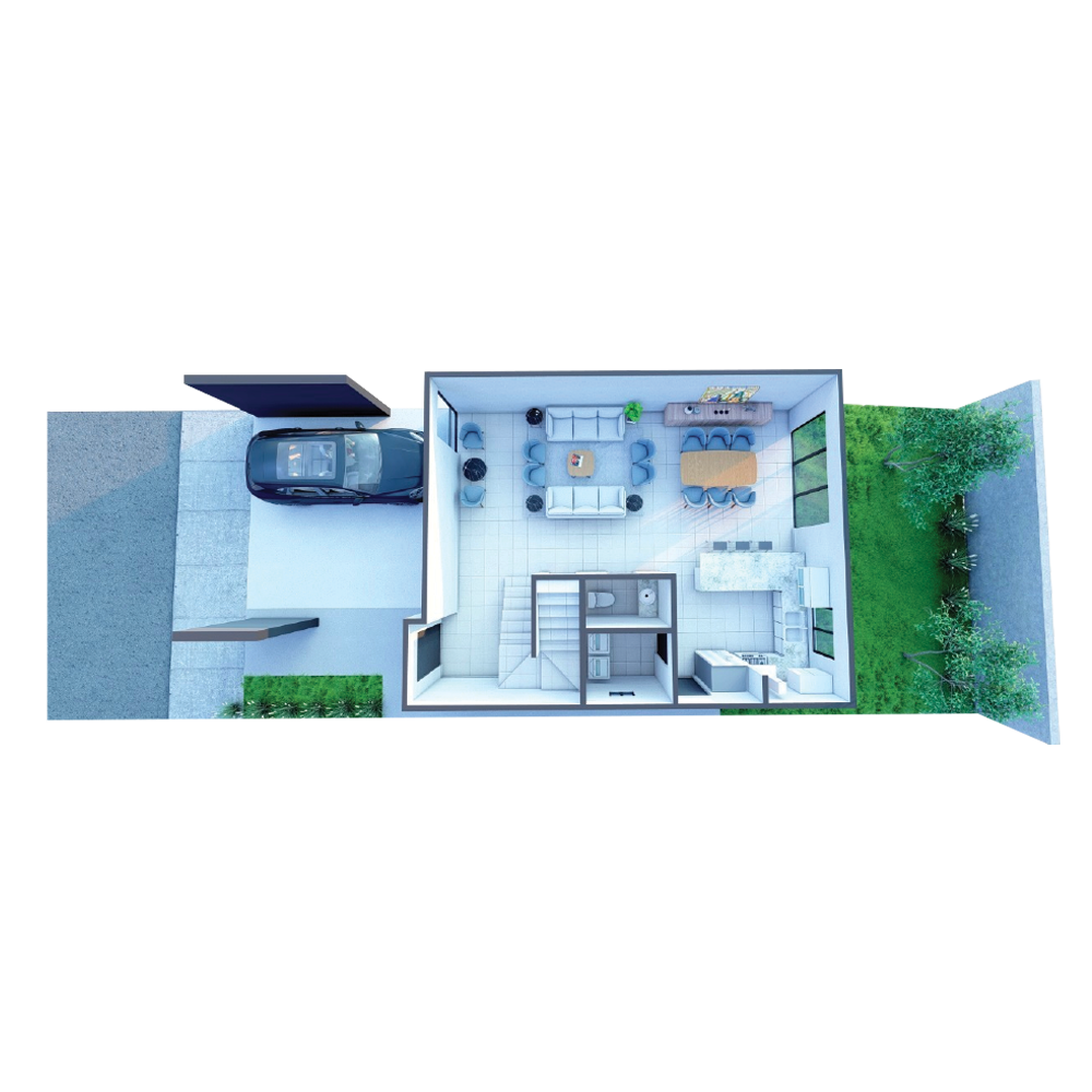 » Cochera para 2 automóviles» Amplia sala y comedor» Cocina amplia» Cuarto de lavandería» Baño de visitas» Bodega interior (bajo escalera)