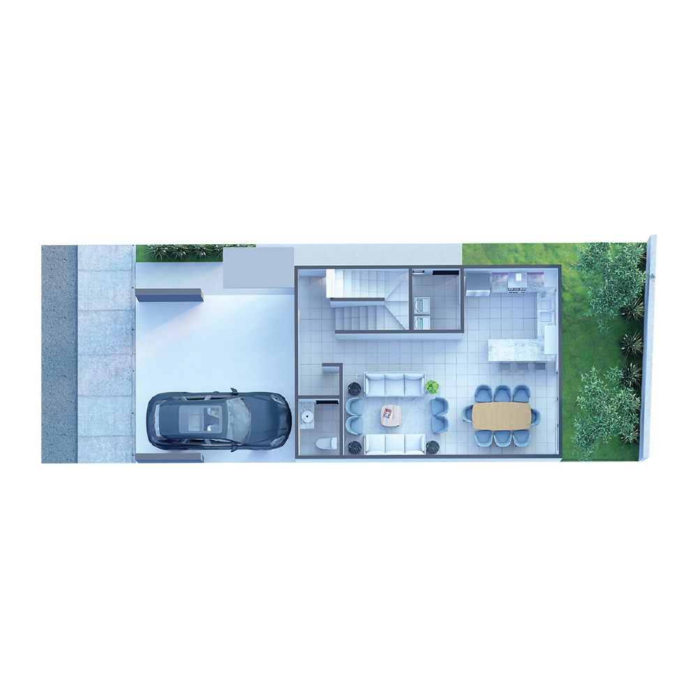 » Cochera para 2 automóviles» Amplia sala y comedor» Cocina amplia» Cuarto de lavandería» Baño de visitas» Bodega interior (bajo escalera)