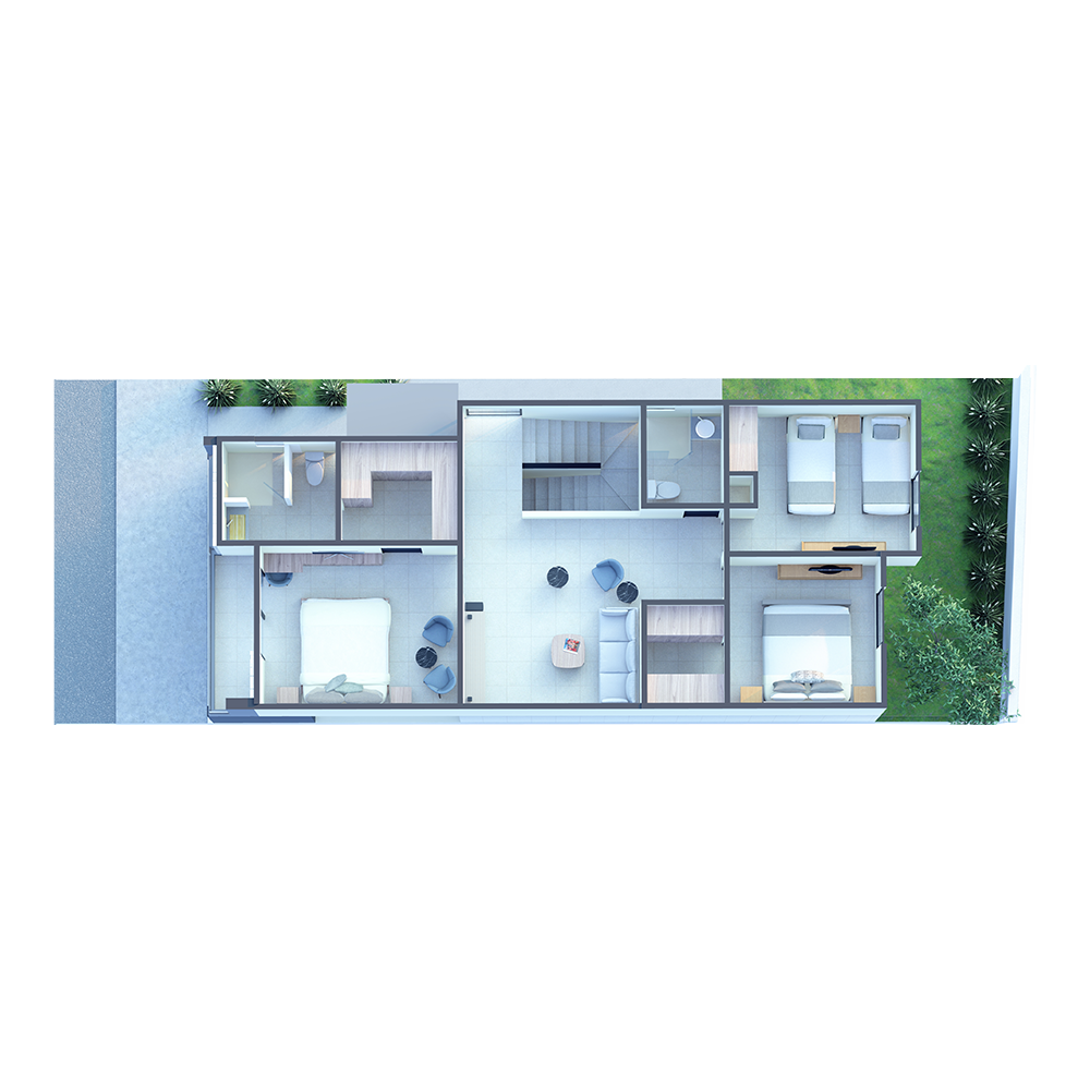 » Recámara principal con amplio closet, vestidor y baño completo» 2 Recámaras con espacio para closet» Estancia familiar» Baño completo compartido» Balcón en recámara principal